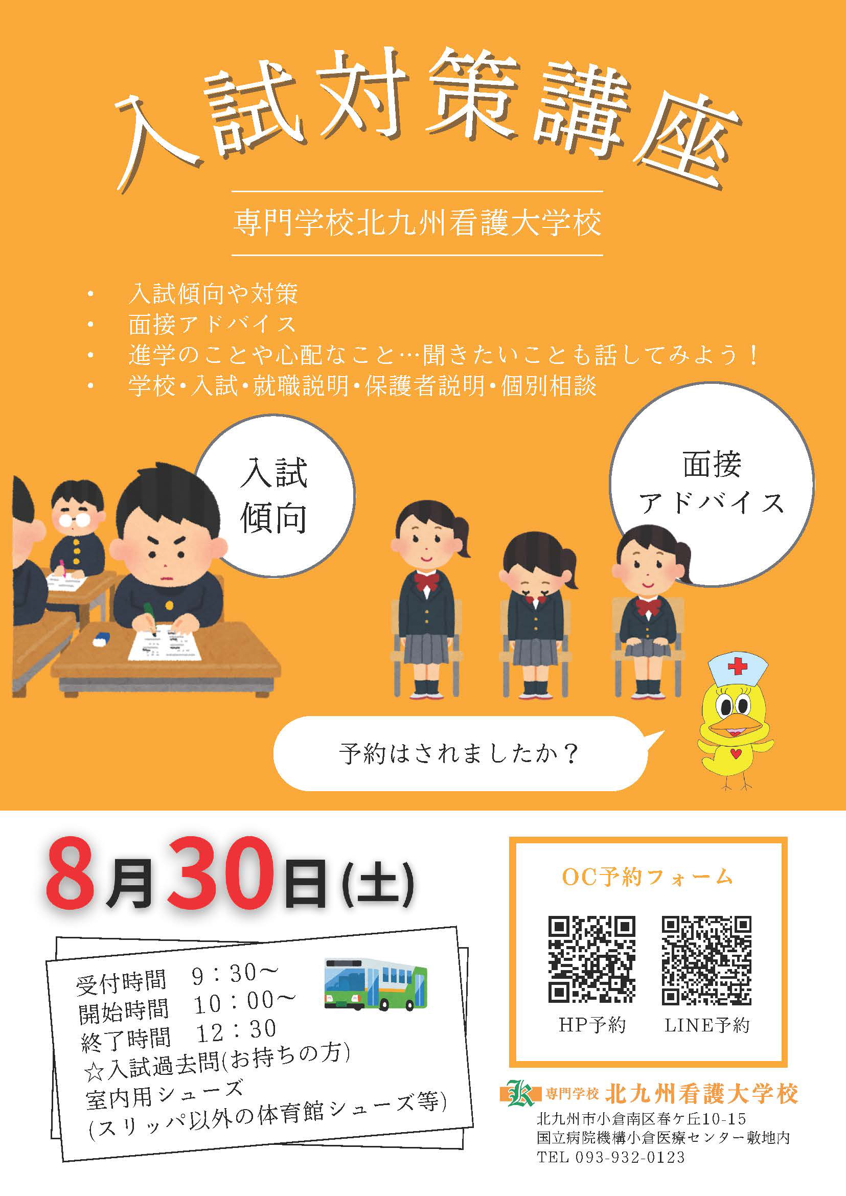 8月30日(土)のオープンキャンパスは、令和7年度入試に向けた『入試対策講座』を開催します。