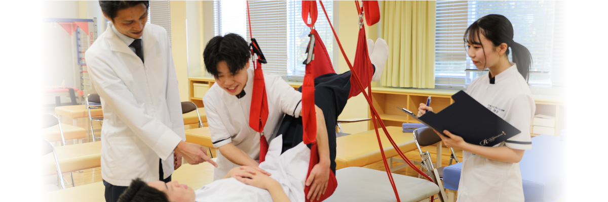 本学科では“人を支える心を学ぶ”をベースにコミュニケーション能力を育みながら、医学知識や身体の仕組み・運動機能についての基礎的学習から、様々な物理療法・運動療法などの専門知識・技術を体系的に修得していきます。